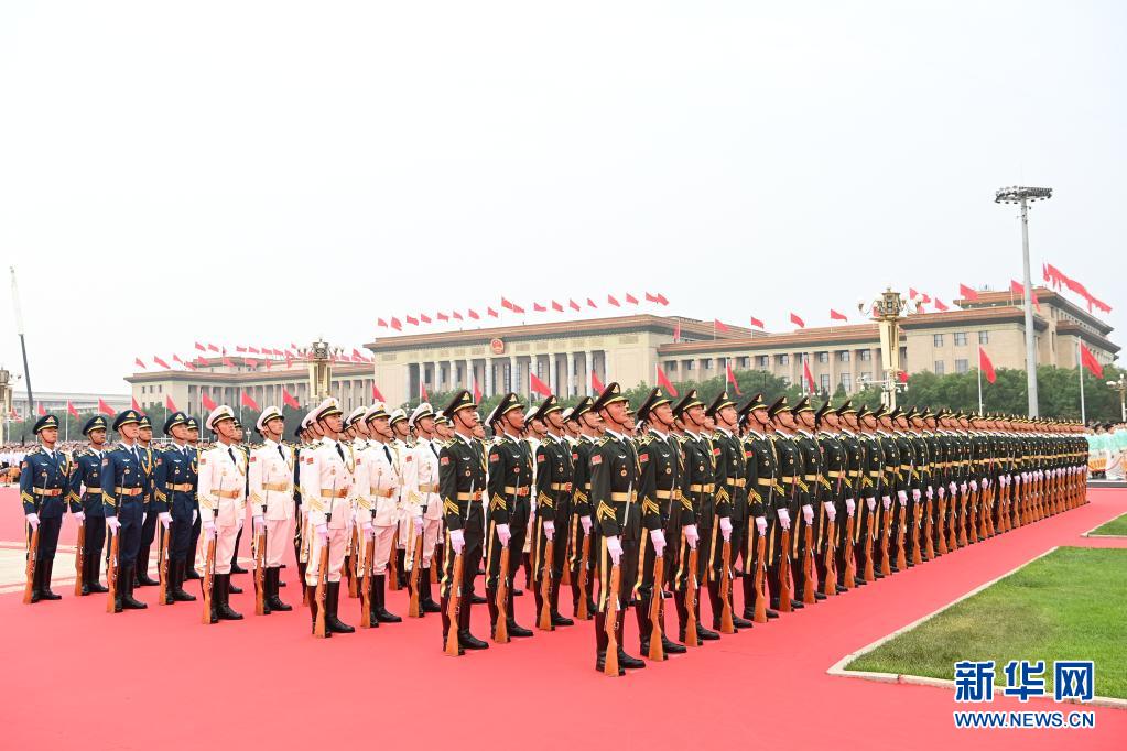 7月1日上午,庆祝中国共产党成立100周年大会在北京天安门广场隆重举行。这是国旗护卫队准备升旗。