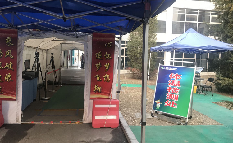 学校在教学楼前设置的体温检测处