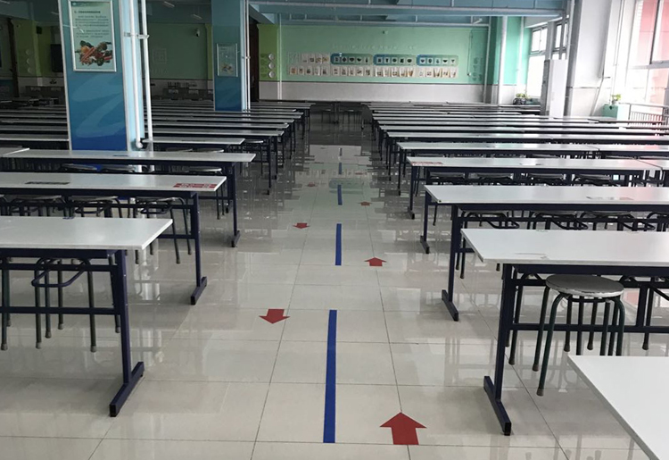 学校食堂里清晰的指示箭头