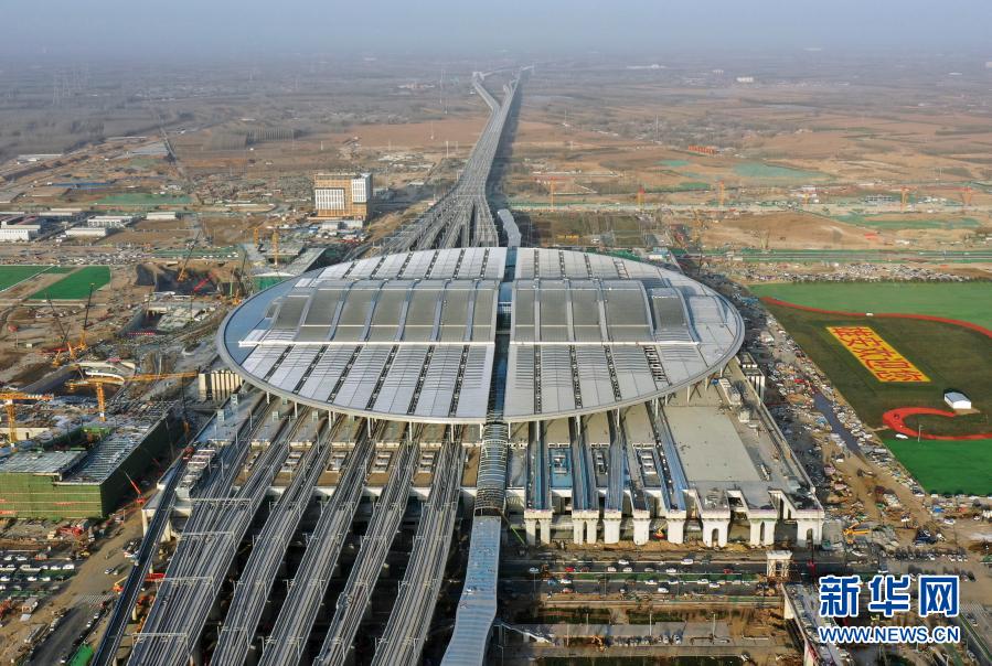 这是2020年12月23日拍摄的京雄城际铁路雄安站(无人机照片)。新华社记者 牟宇 摄
