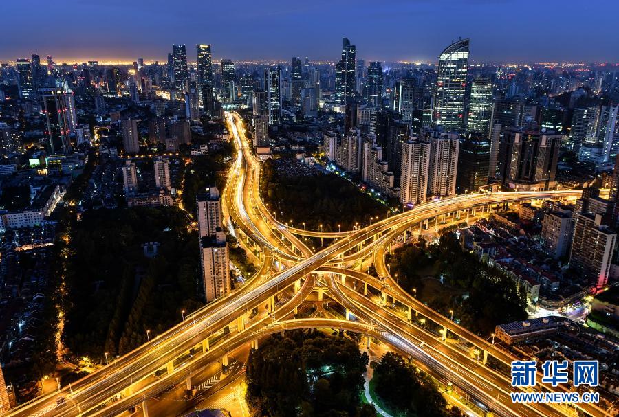 这是2018年11月2日拍摄的上海延安高架路与南北高架路交汇处的立交桥。新华社记者 李鑫 摄