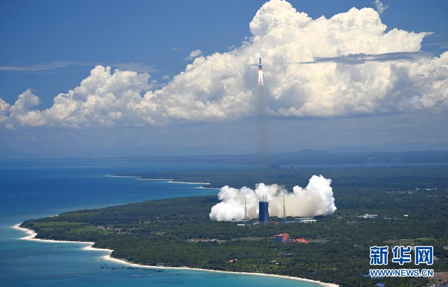 2020年7月23日12时41分,我国在海南岛东北海岸中国文昌航天发射场,用长征五号遥四运载火箭将我国首次火星探测任务“天问一号”探测器发射升空。新华社记者 郭程 摄