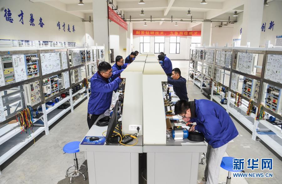 2020年12月6日,浙江省杭州市临安区总工会组织的“工匠杯”电工技能大赛举行。这是技术工人在参加电工技能比赛。新华社记者 徐昱 摄