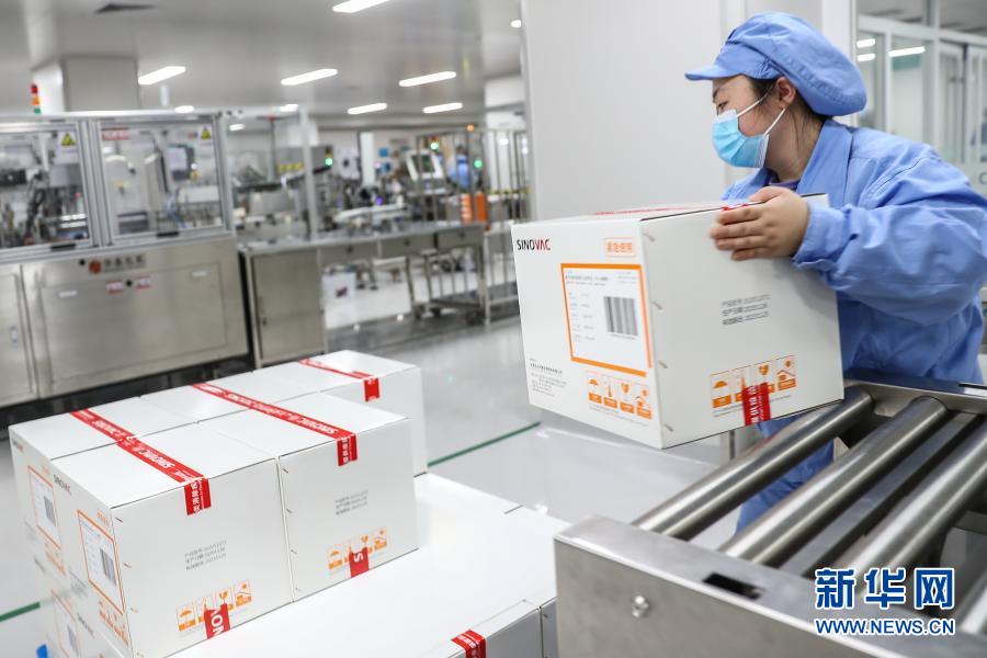 1月6日,工作人员在科兴中维新冠疫苗包装车间内工作。新华社记者 张玉薇 摄