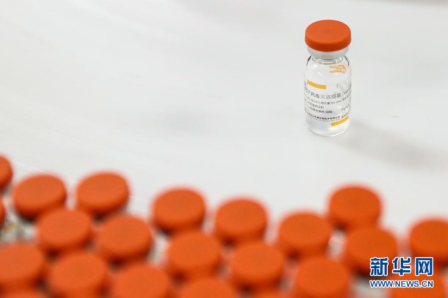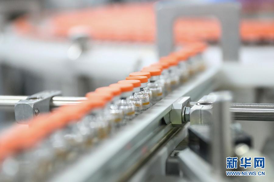 1月6日在科兴中维新冠疫苗包装车间内拍摄的待包装的西林瓶装疫苗。新华社记者 张玉薇 摄