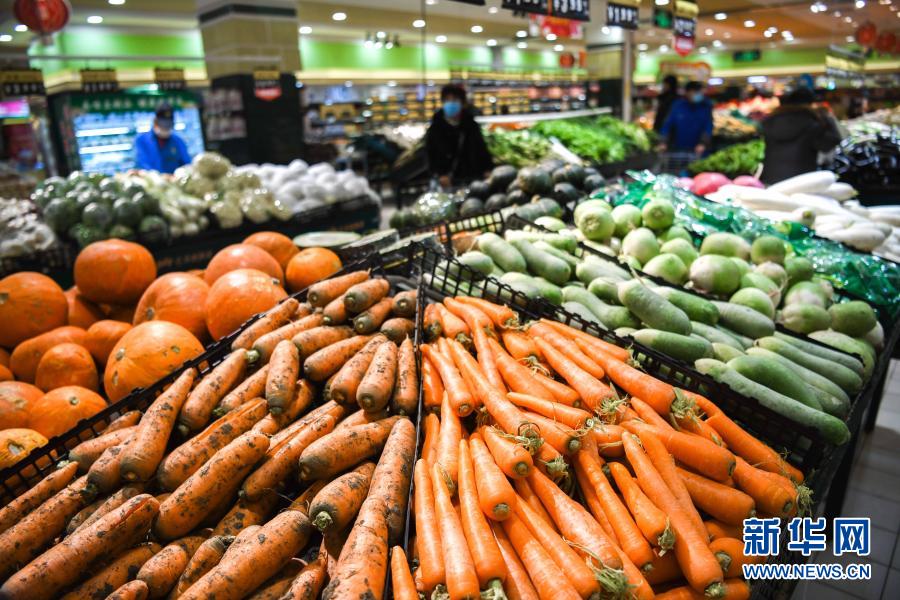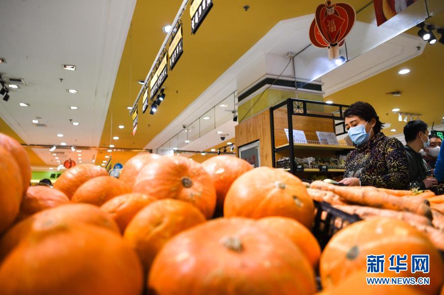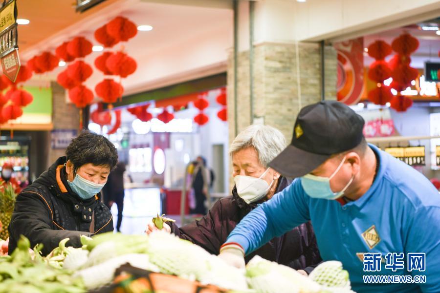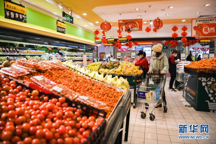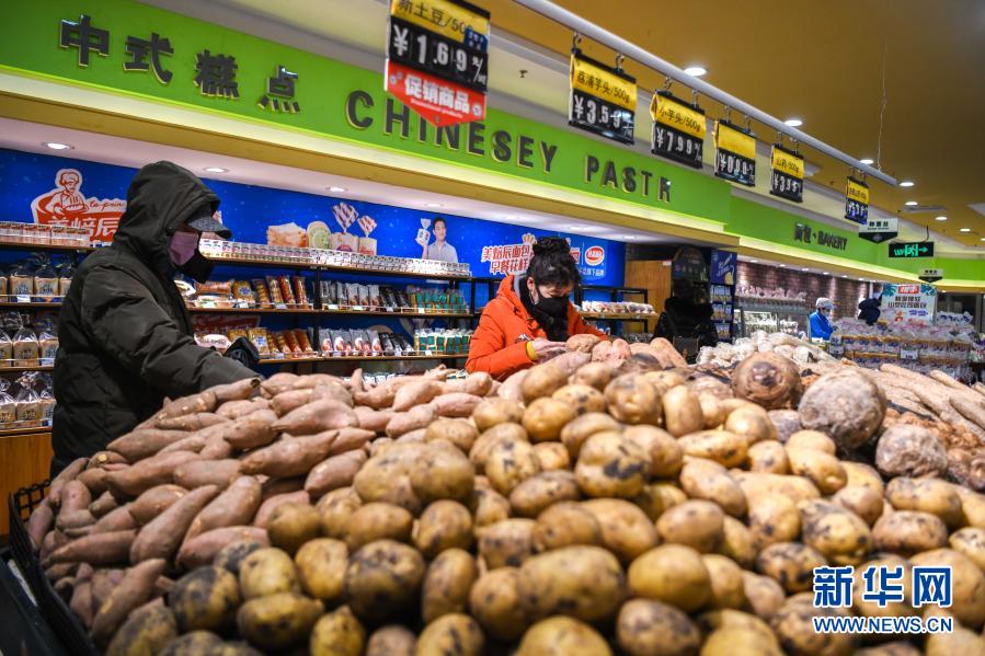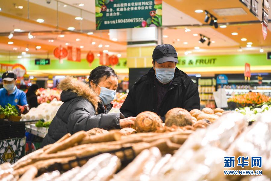 1月25日,消费者在哈尔滨市香坊区一家大型连锁超市购物。