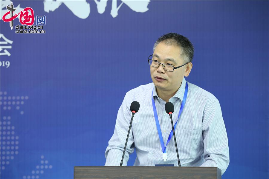 6月5日,2019国研智谷“三新经济”服务与合作发布会在北京举行。图为中国智慧工程研究会副会长王东洋发言。