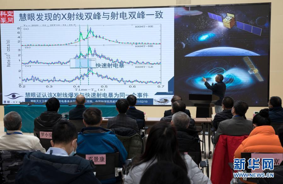 2月19日,中国科学院高能物理研究所举行新闻发布会,发布了慧眼卫星最新观测结果:慧眼卫星发现首个跟神秘的快速射电暴相关联的X射线暴,确认其来自银河系内的磁星SGR J1935+2154,并在国际上首先证认该X射线暴包含的两个X射线脉冲是快速射电暴的高能对应体。这一发现,与国际上其他望远镜的观测一起,证明快速射电暴可以起源于磁星爆发,破解了快速射电暴的起源之谜,并为理解快速射电暴的辐射机制和磁星的爆发机制提供了至关重要的数据。这一研究工作主要由中国科学院高能物理研究所、北京师范大学、美国内华达大学、清华大学等单位完成,并与19日在国际著名期刊《自然·天文学》发表。