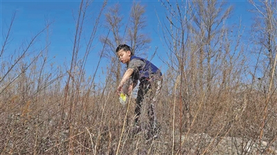 2月4日,李嘉均在爸爸陪同下去潮白河捡拾垃圾。 受访者供图