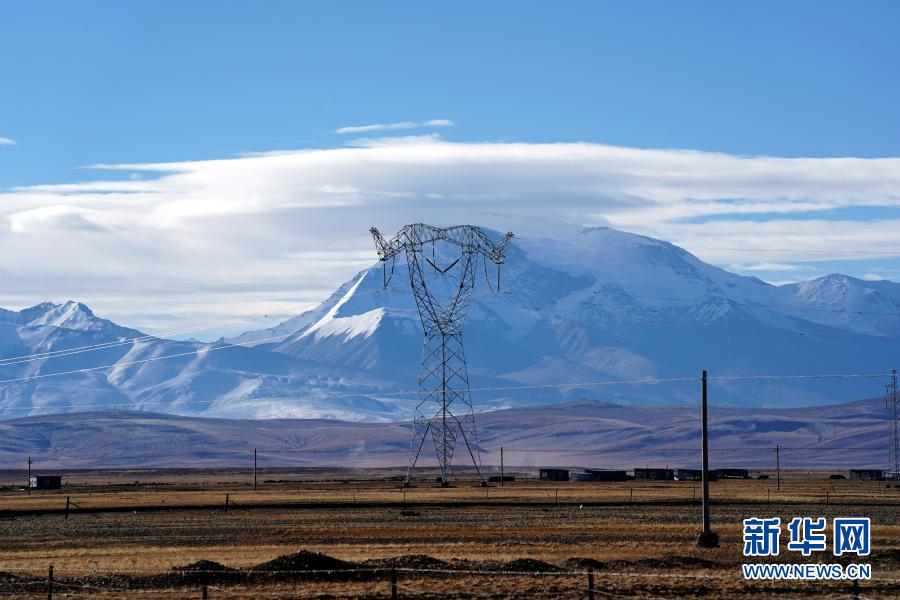 这是2020年11月29日在西藏阿里地区普兰县拍摄的西藏阿里与藏中电网联网工程输电铁塔。新华社记者 詹彦 摄