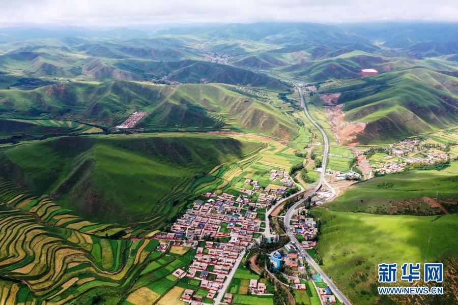 这是2020年8月12日拍摄的甘肃省甘南藏族自治州卓尼县阿子滩镇阿子滩村(无人机照片)。新华社记者 邢广利 摄