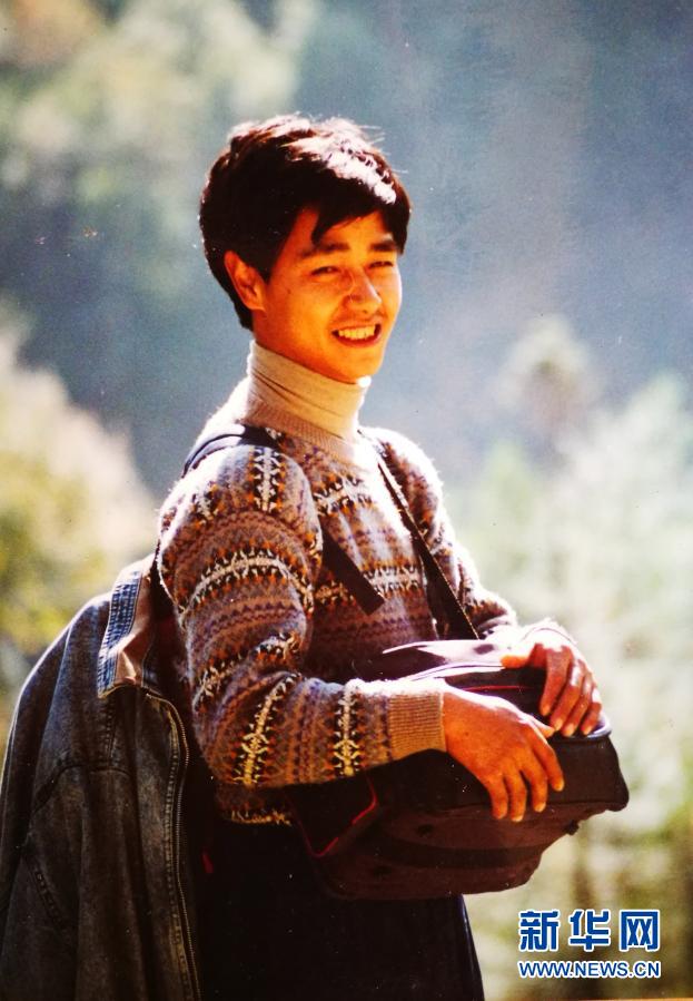 四川省江油市小坝村原党支部书记青方华24岁时背着炸药上山修路(翻拍资料照片)。新华社发