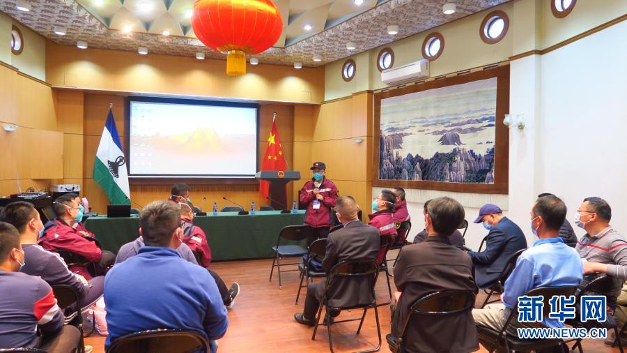 2020年10月3日,中国医疗专家组成员在莱索托马塞卢举办疫情防控讲座。应莱索托政府邀请,中国政府抗疫医疗专家组一行10人于9月27日至10月7日在莱索托开展抗击新冠疫情援助工作。新华社发(中国驻莱索托大使馆供图)