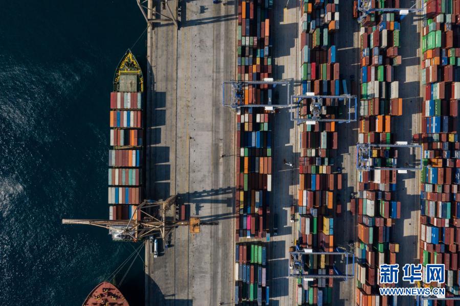 这是2019年9月6日航拍的停靠在希腊比雷埃夫斯港集装箱码头的中远海运银河轮。新华社发(莱夫特里斯·帕察里斯摄)