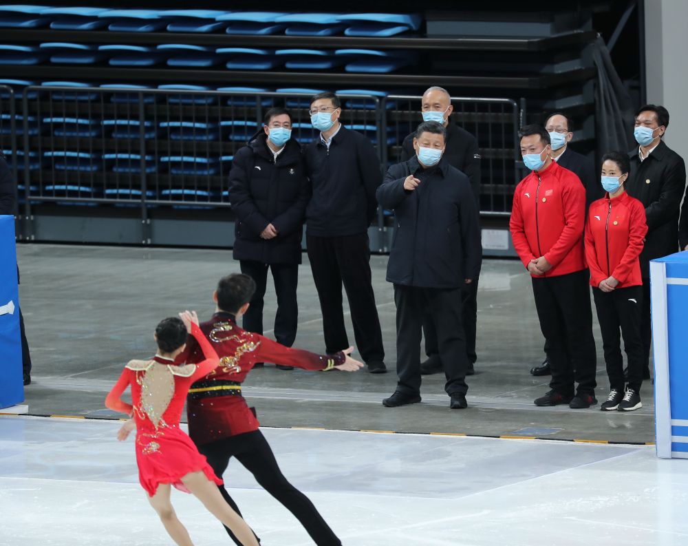 1月18日至20日,中共中央总书记、国家主席、中央军委主席习近平在北京、河北考察,并主持召开北京2022年冬奥会和冬残奥会筹办工作汇报会。这是18日上午,习近平在位于北京市海淀区的首都体育馆考察。新华社记者 姚大伟 摄