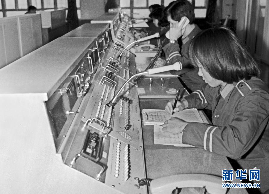 1986年1月10日,广州市公安局开通全国首家110报警服务台。这是第一代接线员在工作中(1986年2月摄)。新华社发(周晓辉 摄)
