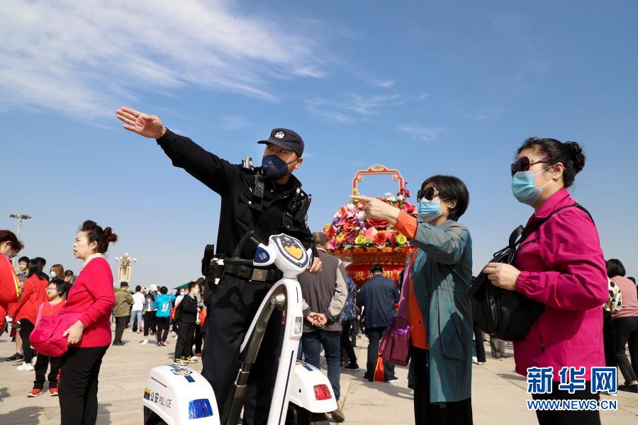 2020年国庆节期间,民警在北京天安门广场为群众指路(资料照片)。新华社发(公安部供图)