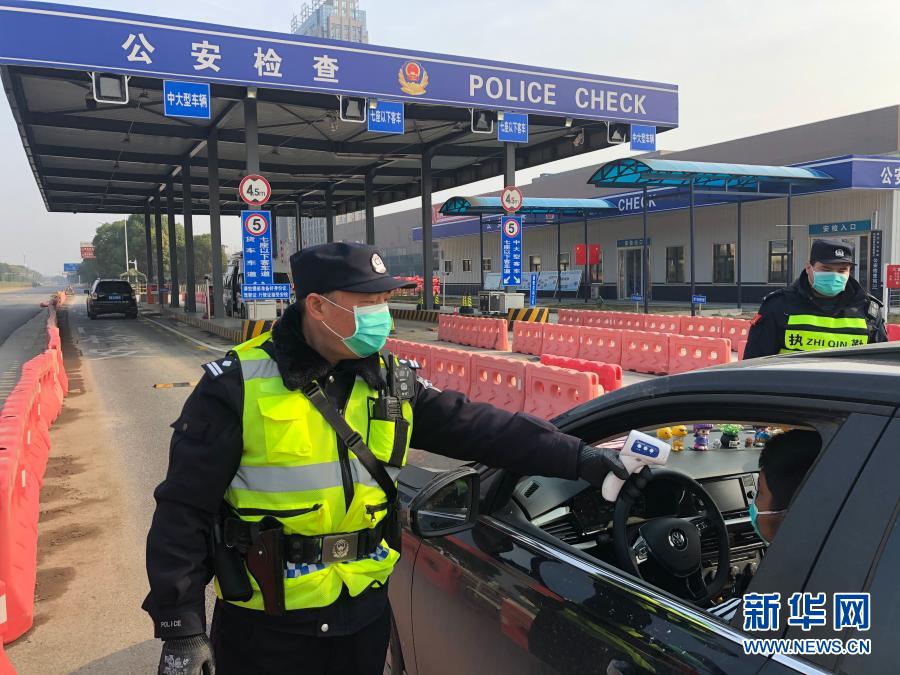 在疫情防控的关键阶段,民警在武汉东西湖区舵落口公安检查站执勤(资料照片)。新华社发