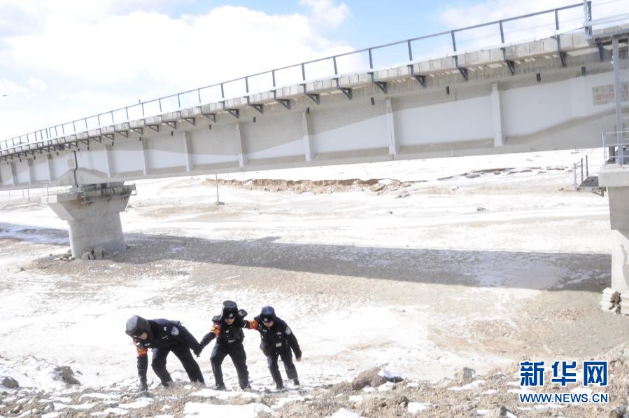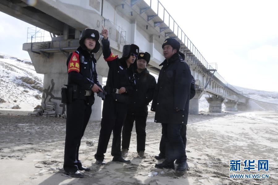 青藏铁路公安局沱沱河车站派出所民警在巡查路线(2020年1月21日摄)。新华社记者 王浡 摄