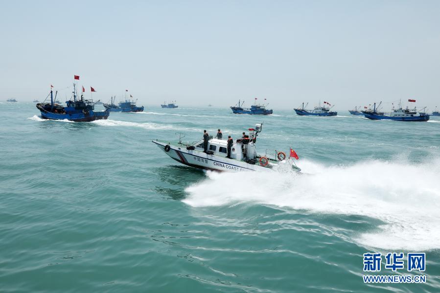 海警执法员加强海域巡逻,防止黑恶势力滋扰作业渔船(2020年8月16日摄)。新华社发(翟少华 摄)