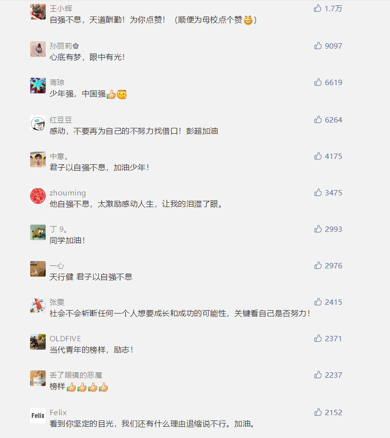 距离9月开学还有几个月时间,彭超的工作已被安排得满满当当。“我参加了由四川省残联组织的残疾人励志报告团,去往机关单位、高校等,做励志报告。我还将去夏令营当代课老师,为孩子们教英语。”(记者 陈淋)(照片由受访对象提供,网友评论截图自网络)