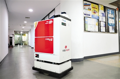 在韩国世宗市,智能送货机器人在完成送货服务后自动离开。为应对“后疫情时代”民众对邮政快递业务需求高涨和新行业萌芽发展,韩国科学技术信息通信部日前联合韩国邮政事业本部,推出多项智能化无人快递收发服务,将自动驾驶快递车等打造成“迷你移动邮局”,旨在促进疫情下非接触式快递业务的创新发展,协助推动建设“智慧城市”。记者 王婧嫱 摄