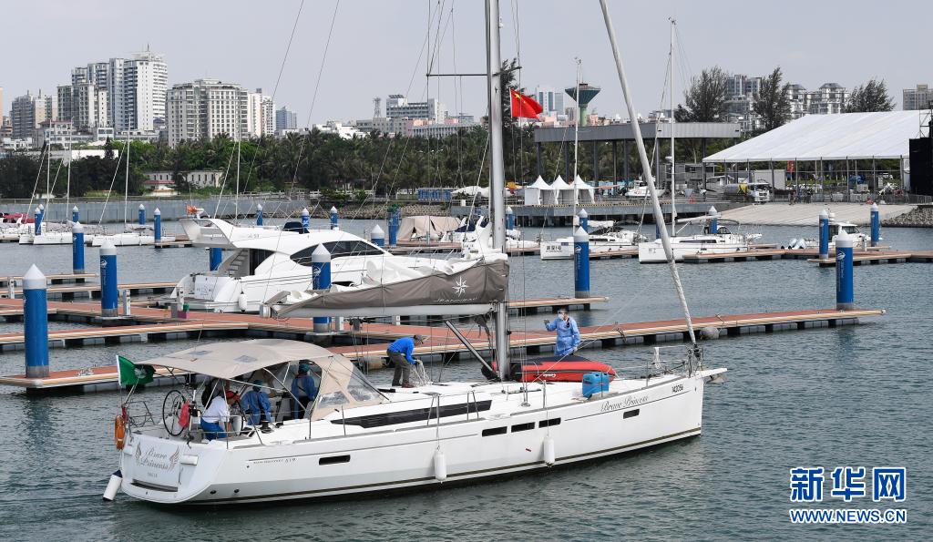 参加消博会游艇展的首艘境外游艇抵达海口,进入海口国家帆船基地公共码头(4月30日摄)。新华社记者 杨冠宇 摄