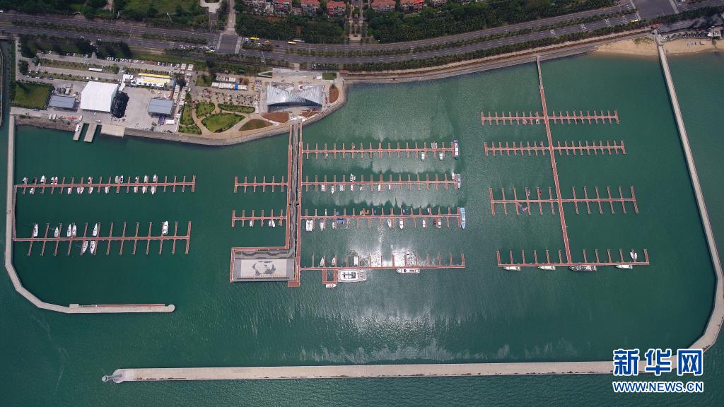 这是消博会游艇展的举办地——海口国家帆船基地公共码头(无人机照片,4月30日摄)。新华社记者 杨冠宇 摄