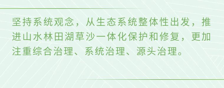要坚持山水林田湖草沙系统治理,坚持正确的生态观、发展观,敬畏自然、顺应自然、保护自然,上下同心、齐抓共管,把保持山水生态的原真性和完整性作为一项重要工作,深入推进生态修复和环境污染治理,杜绝滥采乱挖,推动流域生态环境持续改善、生态系统持续优化、整体功能持续提升。